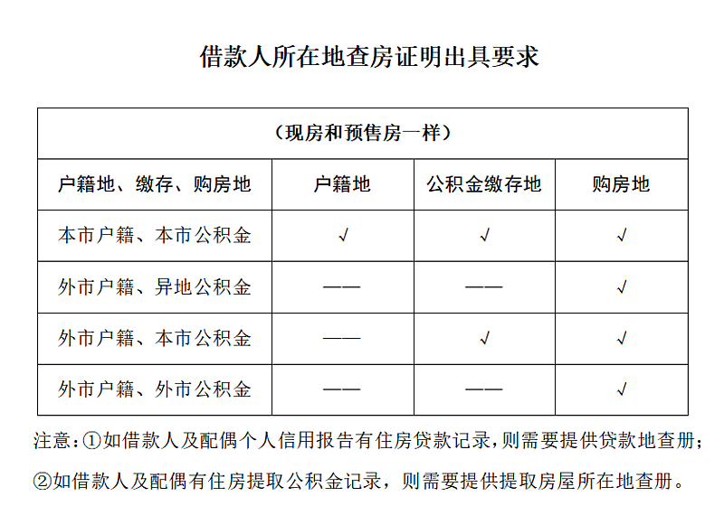 3、在異地繳存住房公積金的職工,還須提供繳存地住房公積金管理中心出具的《異地貸款職工住房公積金繳存使用證明》(出具后有效期限2個(gè)月)、公積金繳存明細(xì)(近6期或以上)和繳存地住房登記記錄查詢(xún)證明(出具后有效期限2個(gè)月)。 |